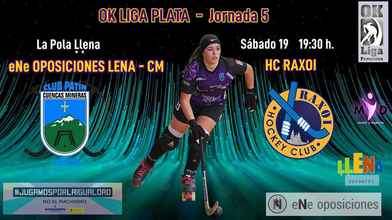 Quinta jornada de la OK Liga Plata y este sábado a las 19:30 h., en el Polideportivo de Pola de Lena, nos visita el Hockey Club Raxoi.